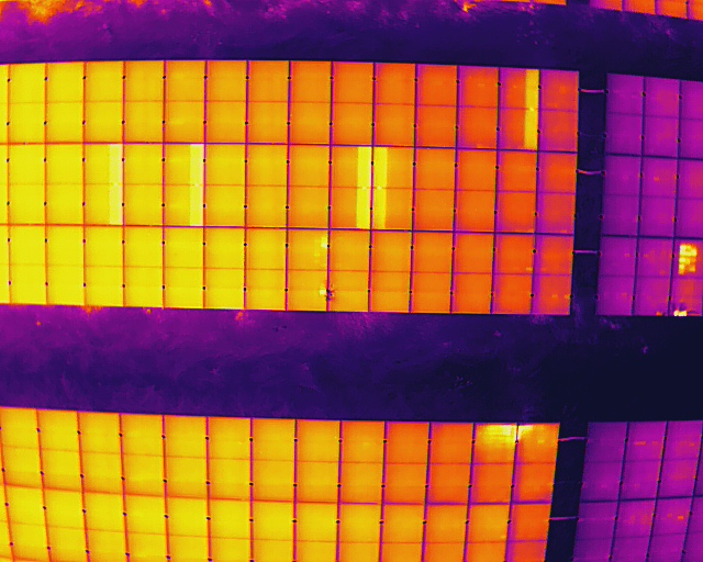 werkt, met een thermische camera kun je op celniveau in het zonnepaneel bepalen of deze nog fungeren. Zo kon je preventief handelen wanneer een zonnepaneel het dreigt te begeven. Een defect zonnepaneel kan minder rendement opleven en in het ergste geval brand veroorzaken.